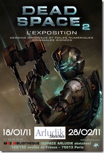 La galerie Arludik propose en exclusivité mondiale du 18 janvier au 28 février 2011, une exposition des dessins originaux et toiles numériques originales grands formats de Dead Space 2, dans son nouvel espace " Arludik-Sketches", situé au cœur du MK2 bibliothèque.